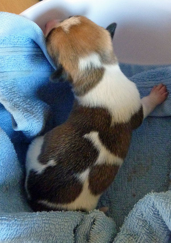 flott in der Wurfkiste unterwegs,um an die Milchbar zu