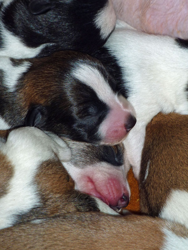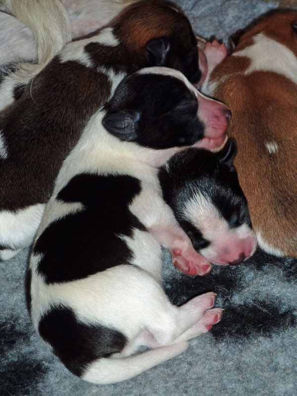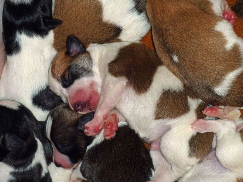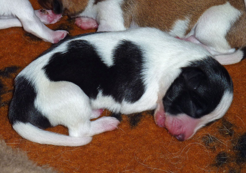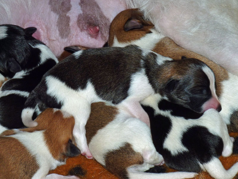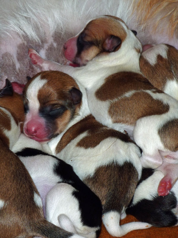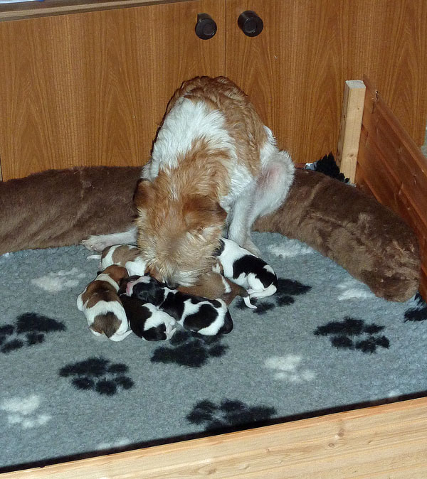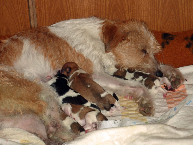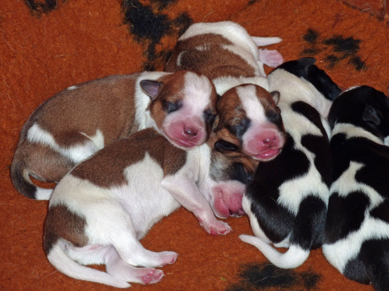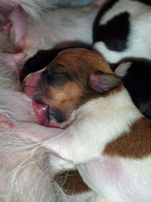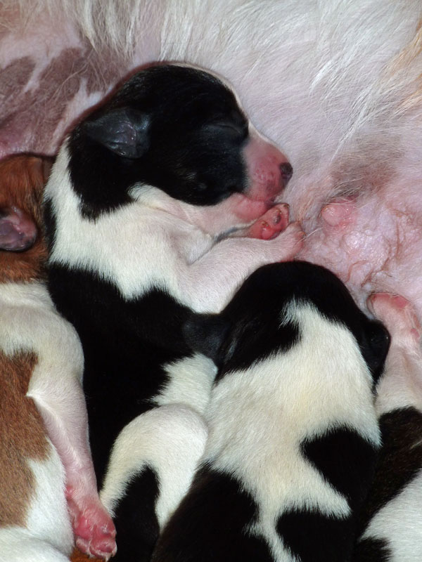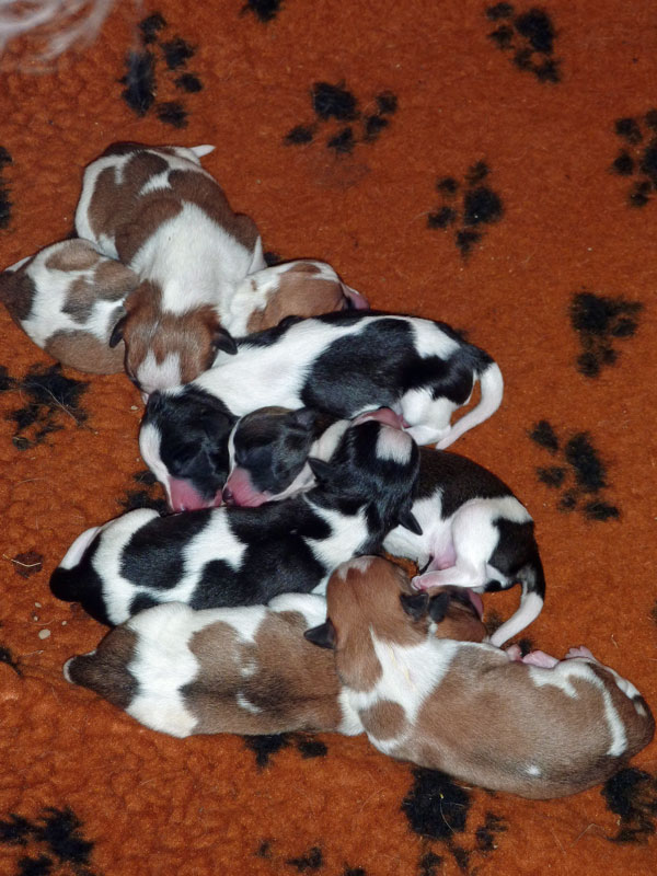 Positiv überrascht hat uns Billie ! Im Gegensatz zu Düse, die ihre beiden Würfe sehr antiautoritär erzogen hat, nimmt Billie ihre Mutterrolle sehr ernst. Beim kleinsten Quicken kontrolliert sie was los ist und wenn einer der Zwerge zu weit weg "rennt" wird er angesackt