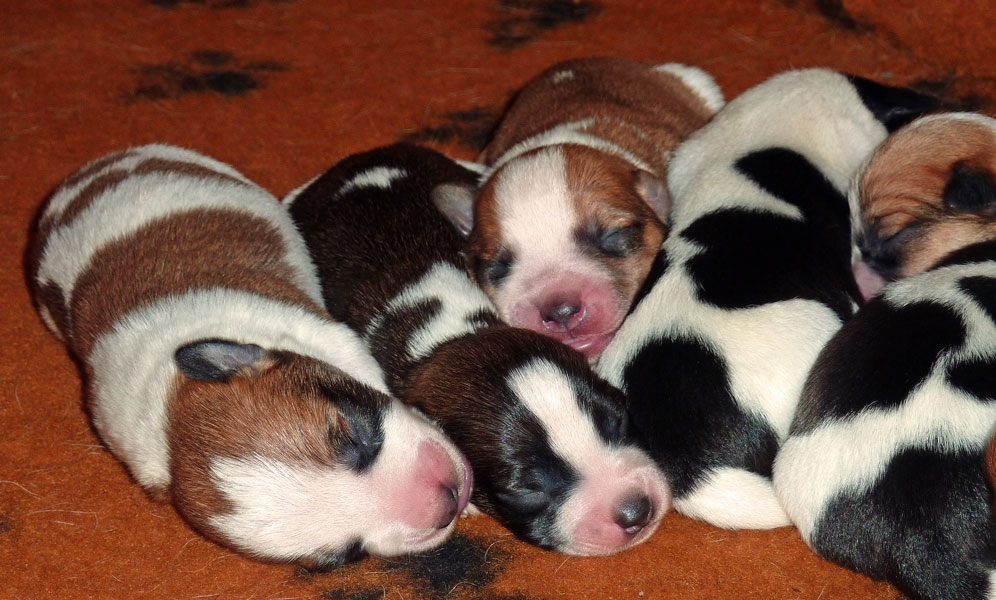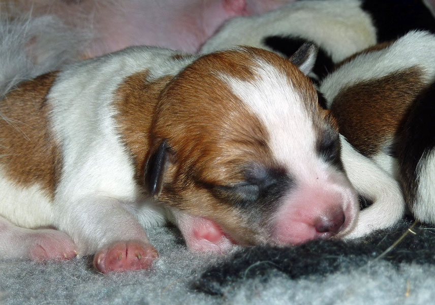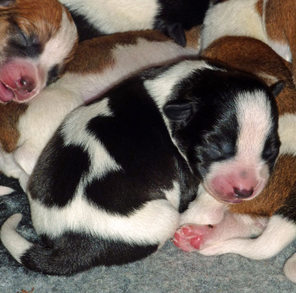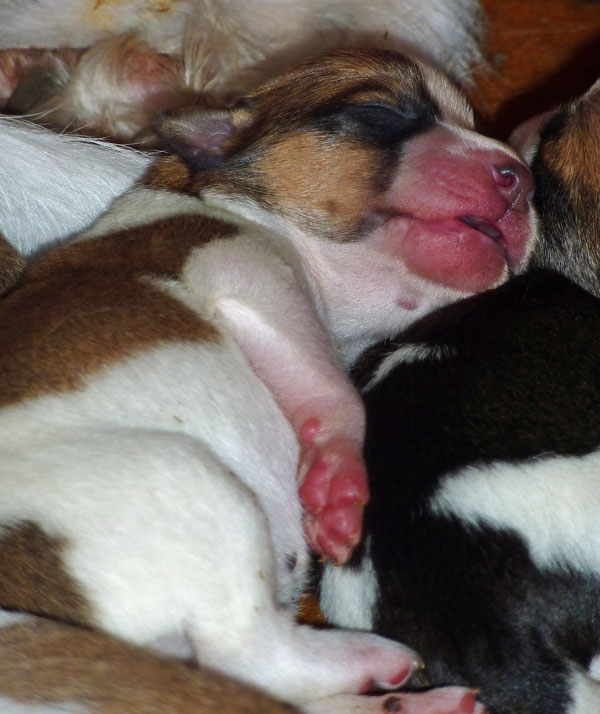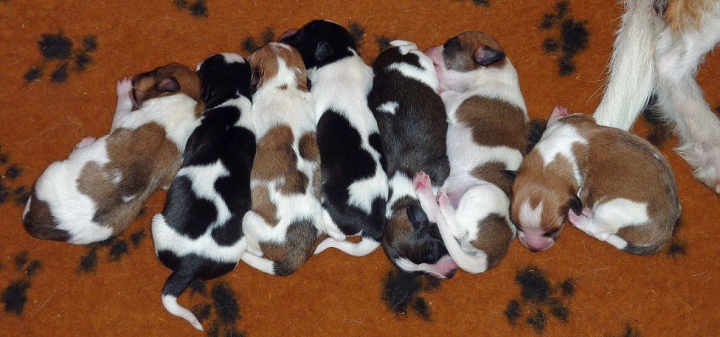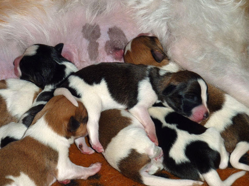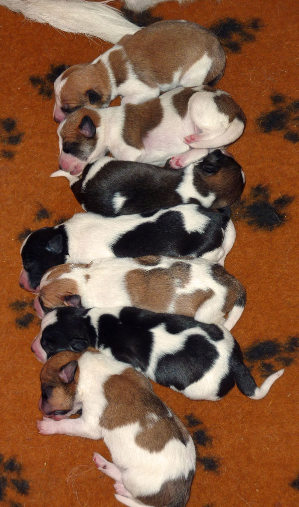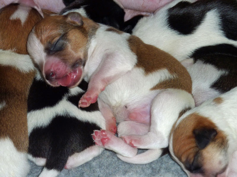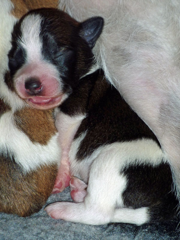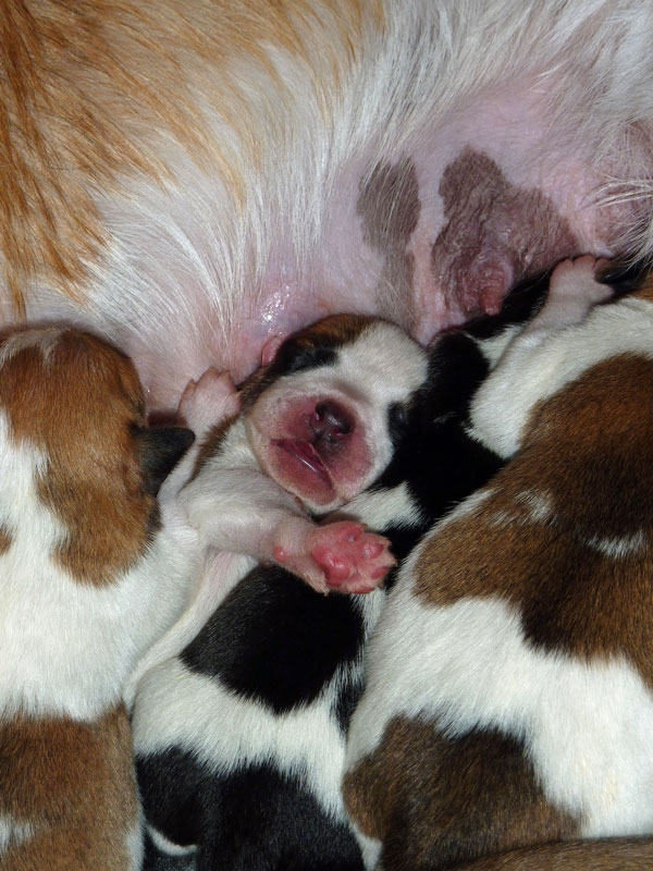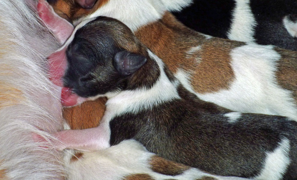 Positiv überrascht hat uns Billie ! Im Gegensatz zu Düse, die ihre beiden Würfe sehr antiautoritär erzogen hat, nimmt Billie ihre Mutterrolle sehr ernst. Beim kleinsten Quicken kontrolliert sie was los ist und wenn einer der Zwerge zu weit weg "rennt" wird er angesackt