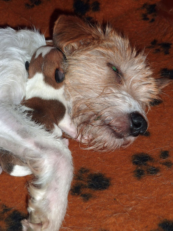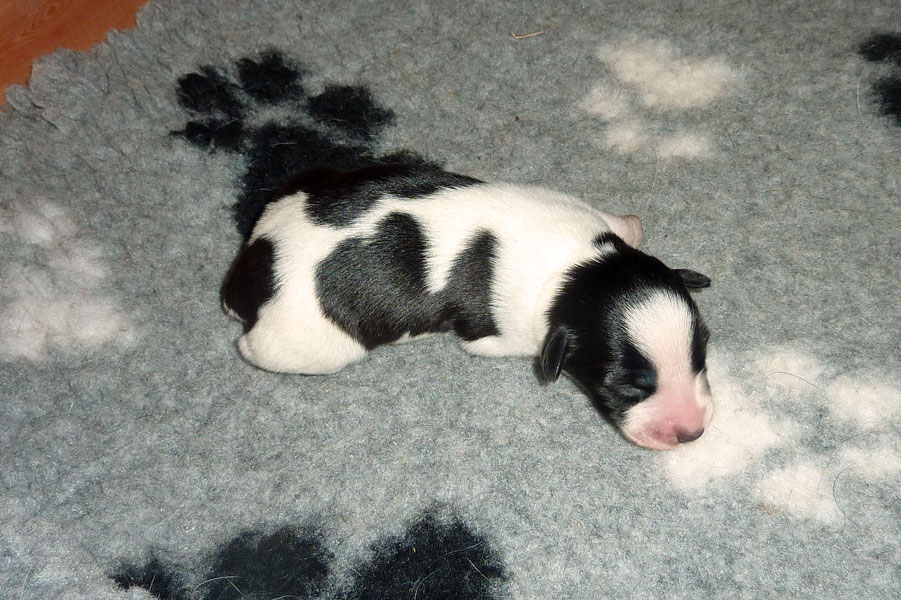 Zum Leidwesen von Oma Düse, dürfen sich die restlichen Vierbeiner der Familie den Welpen nicht nähern. Mit Menschen hat sie keine Problem, da darf schauen wer gerne will.
