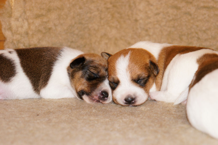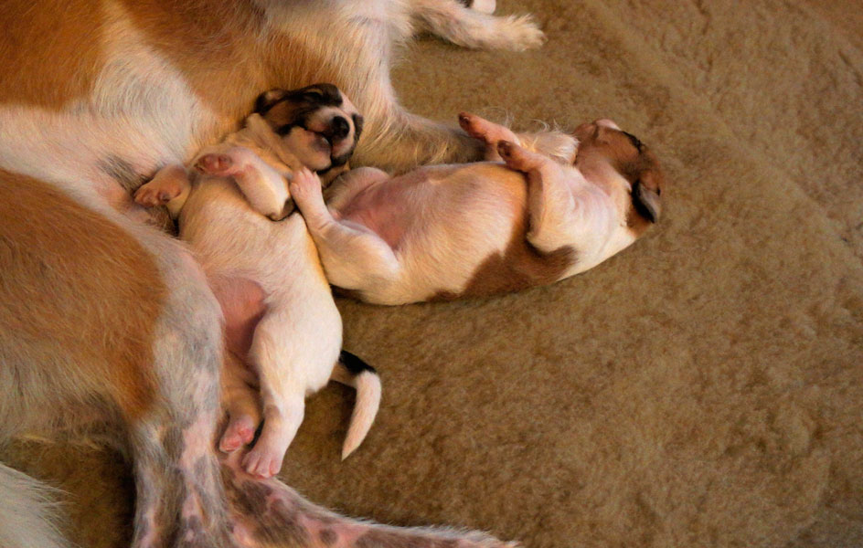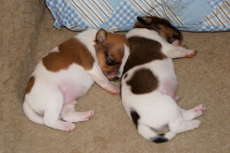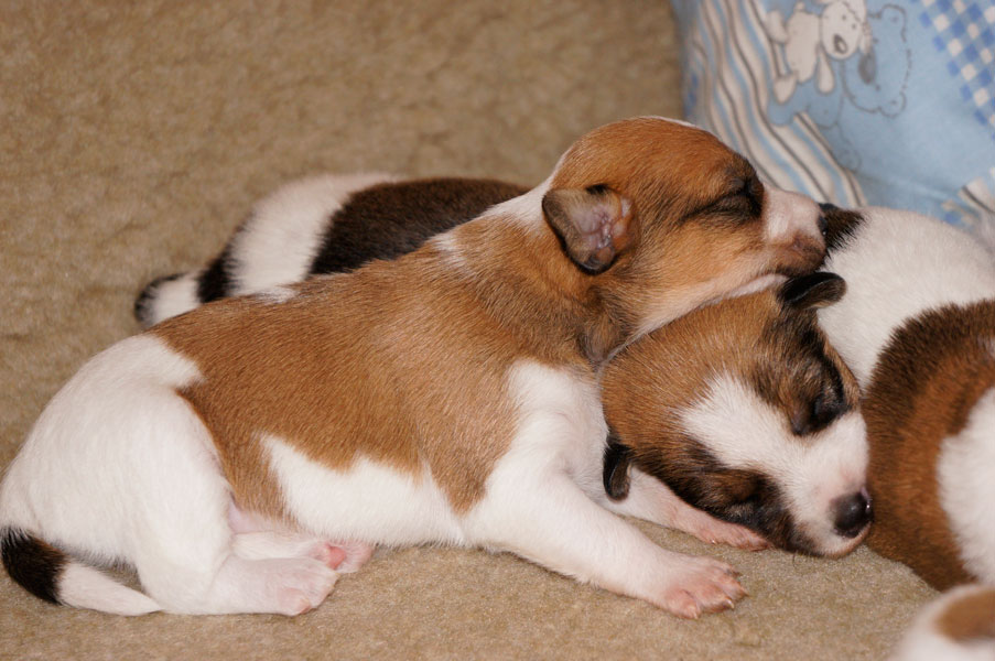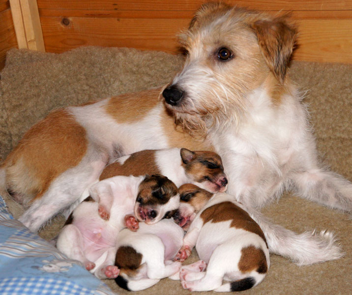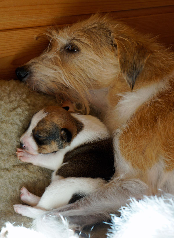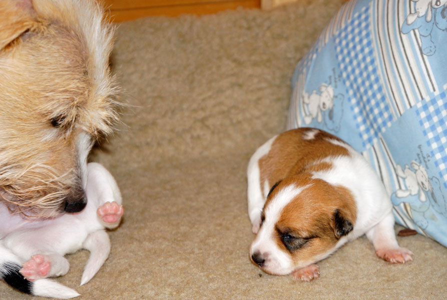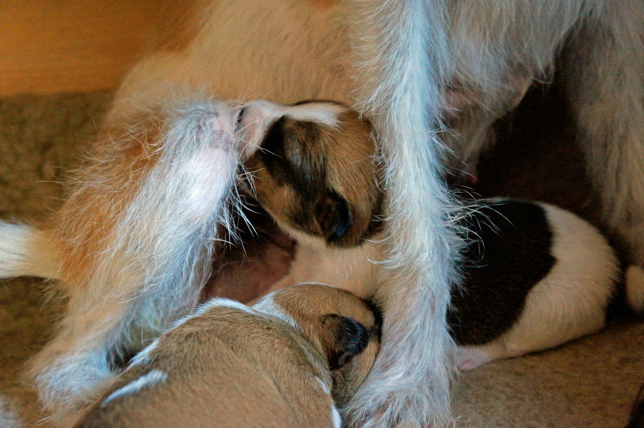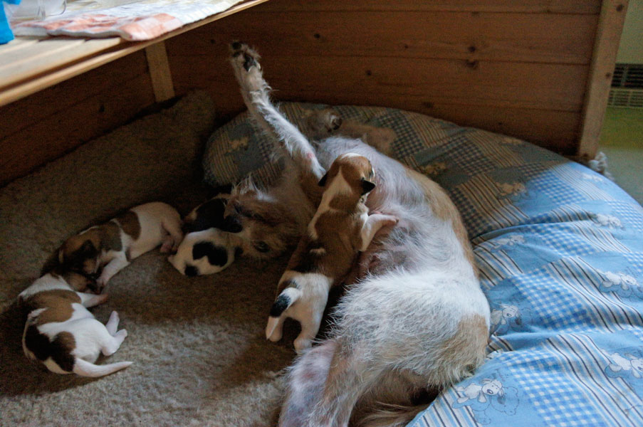Die Äuglein der 4 sind nun offen und die ersten Steh- & Gehversuche werden, in den länger werdenden Wachphasen, unternommen.