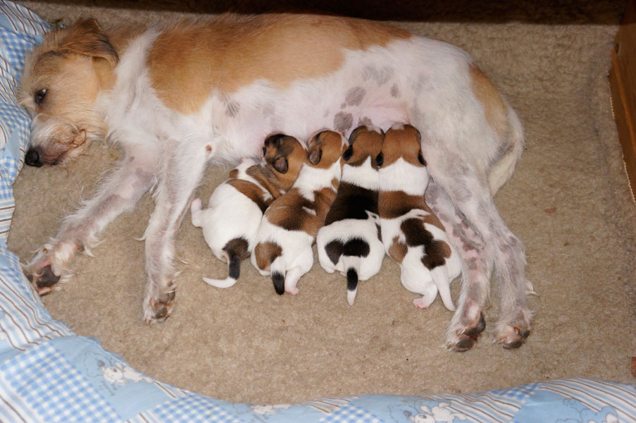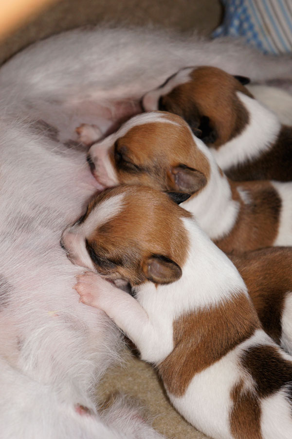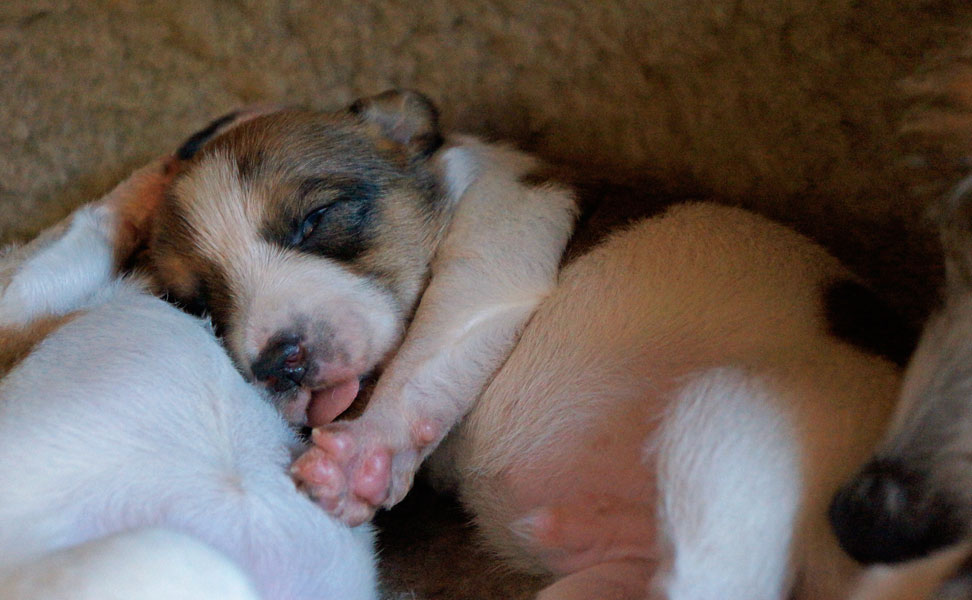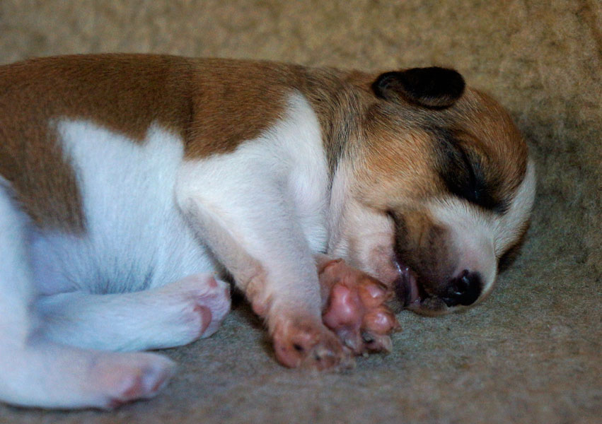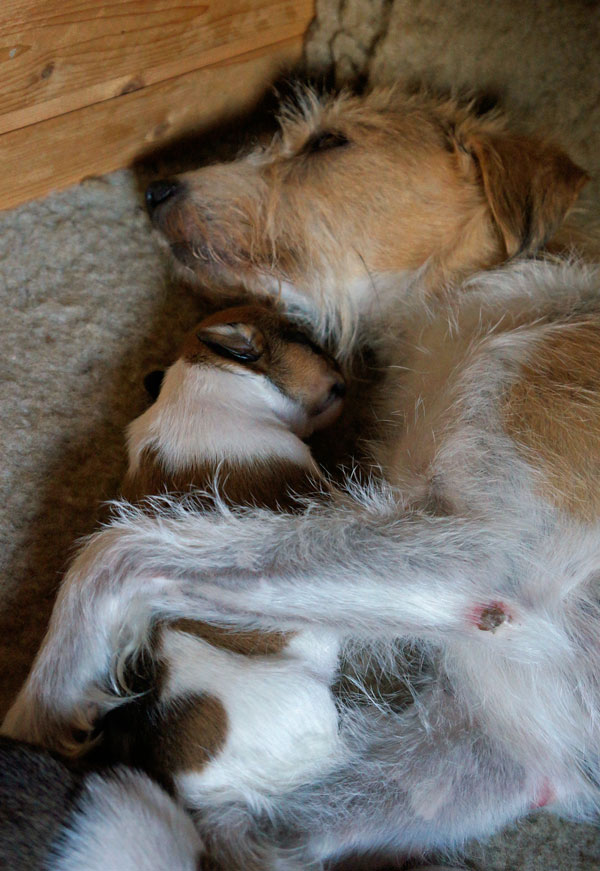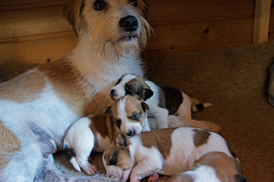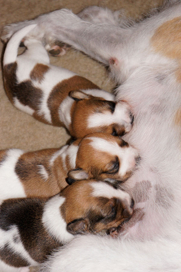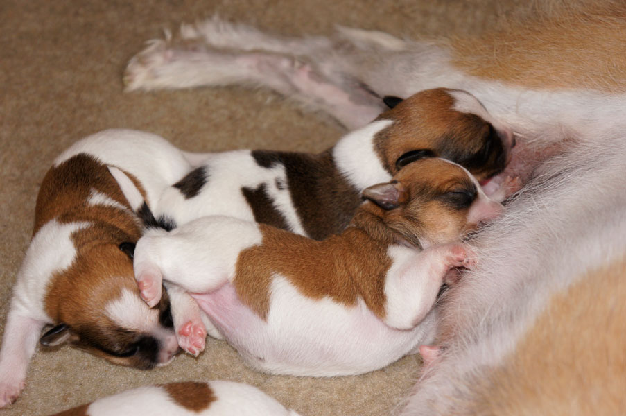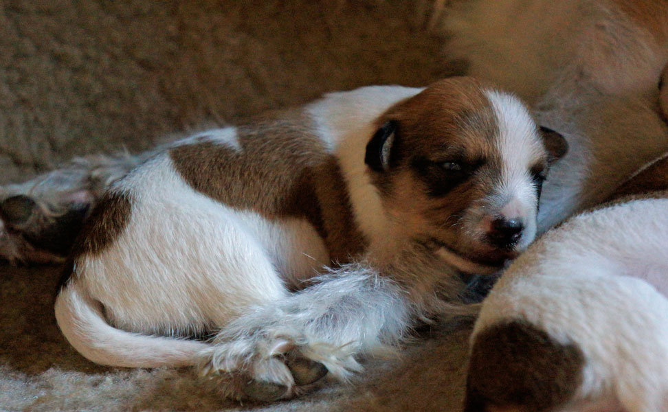 Die Äuglein der 4 sind nun offen und die ersten Steh- & Gehversuche werden, in den länger werdenden Wachphasen, unternommen.