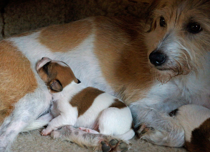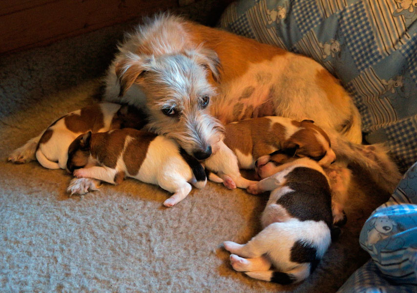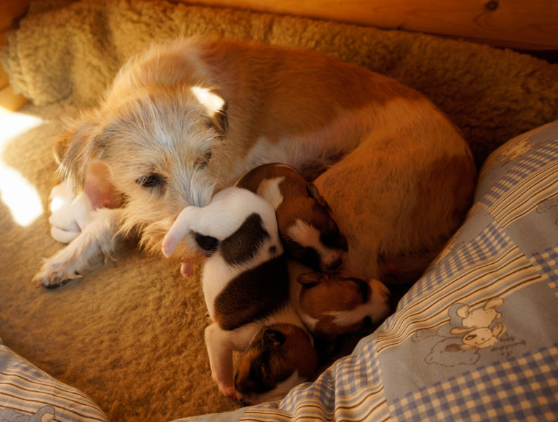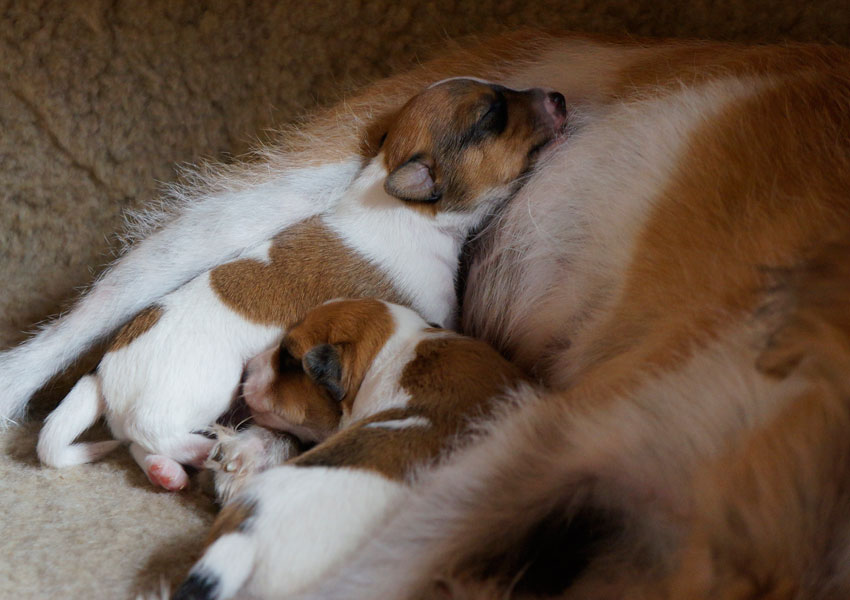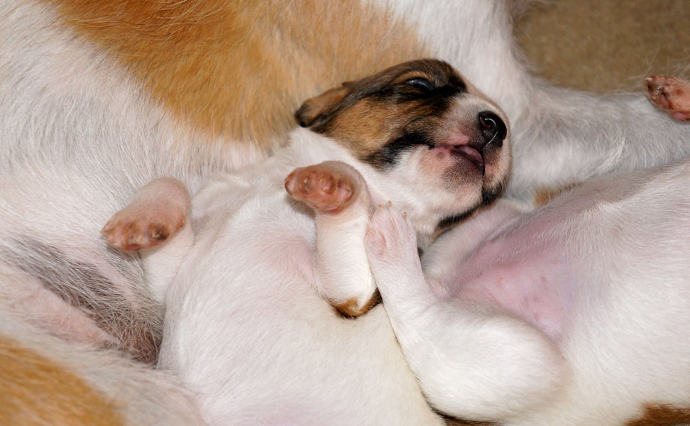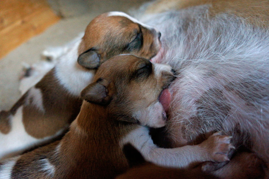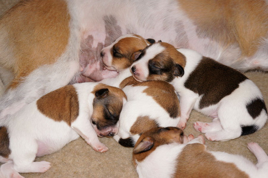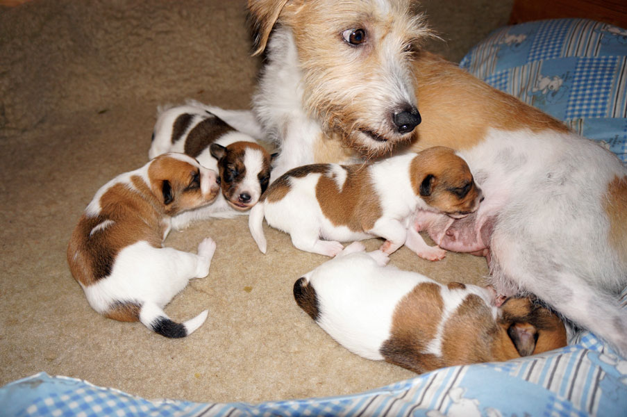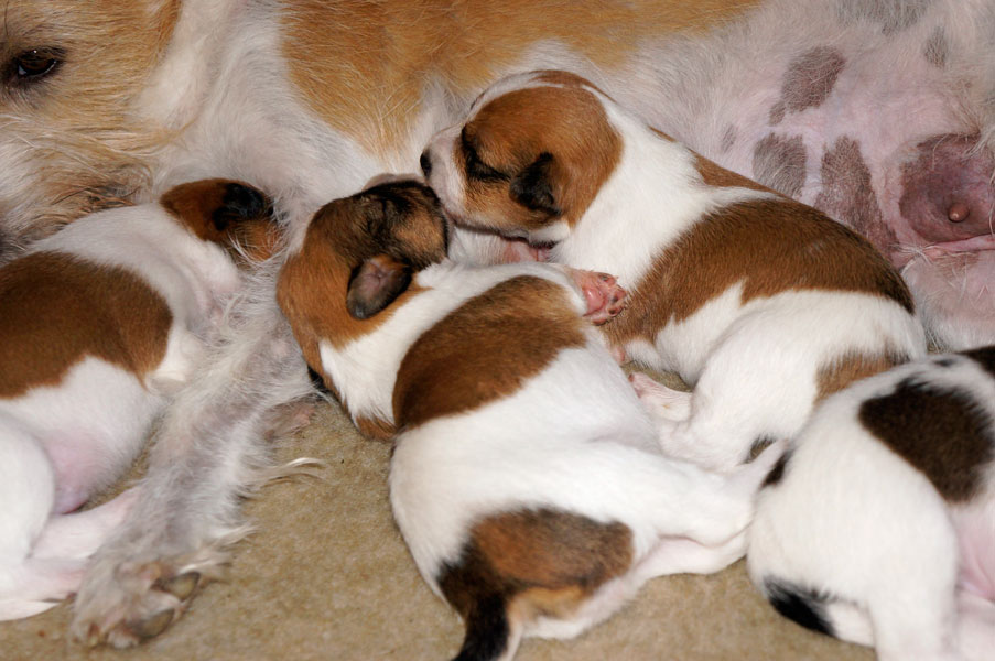 Die Äuglein der 4 sind nun offen und die ersten Steh- & Gehversuche werden, in den länger werdenden Wachphasen, unternommen.