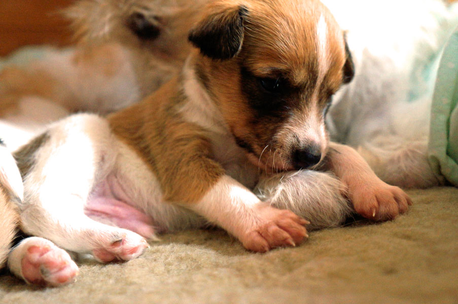 Anfang der Woche sind sie ins Welpenzimmer umgezogen.
