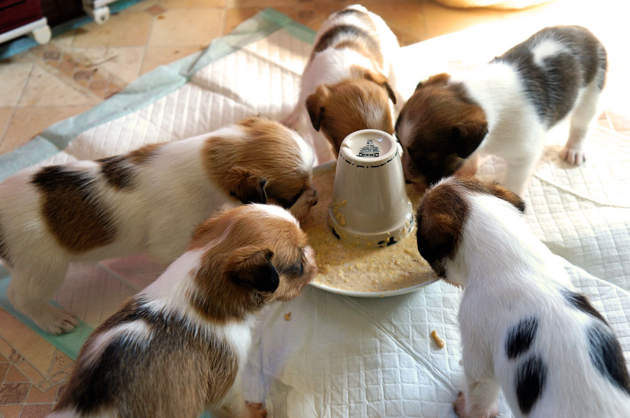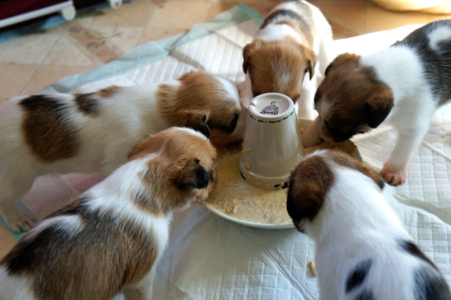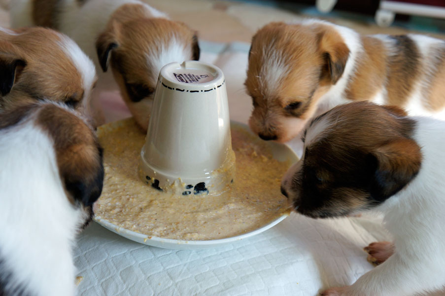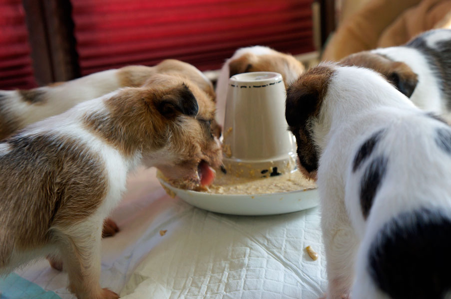 Außerdem gibt es nun jeden morgen Welpenbrei .