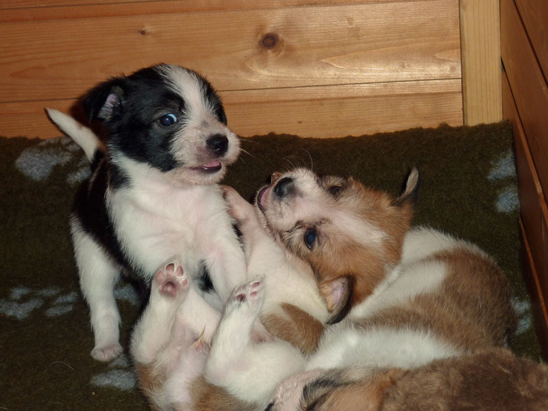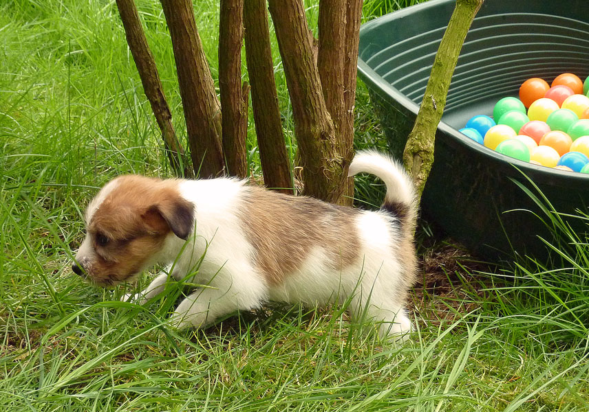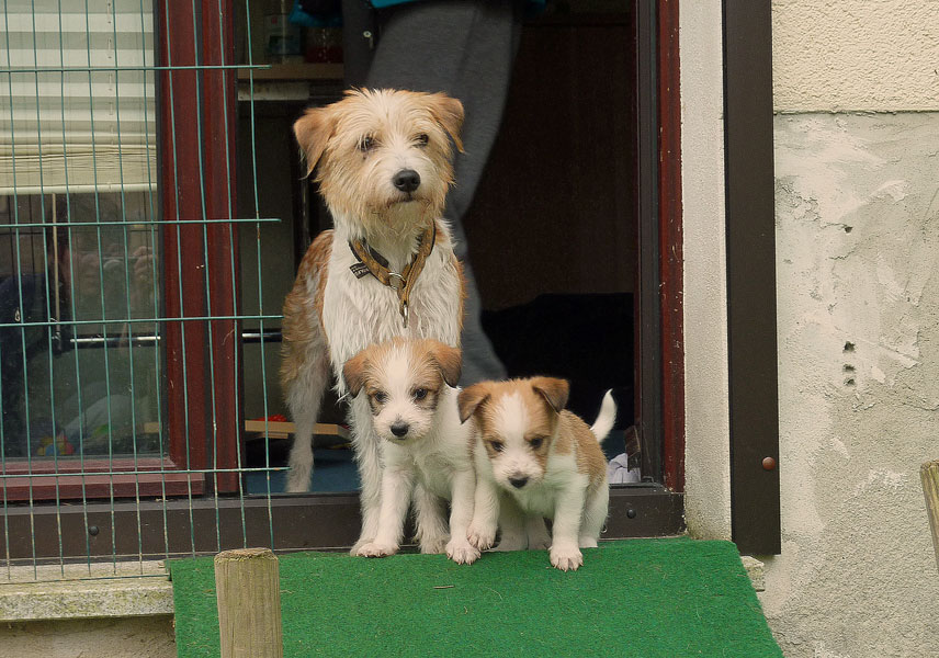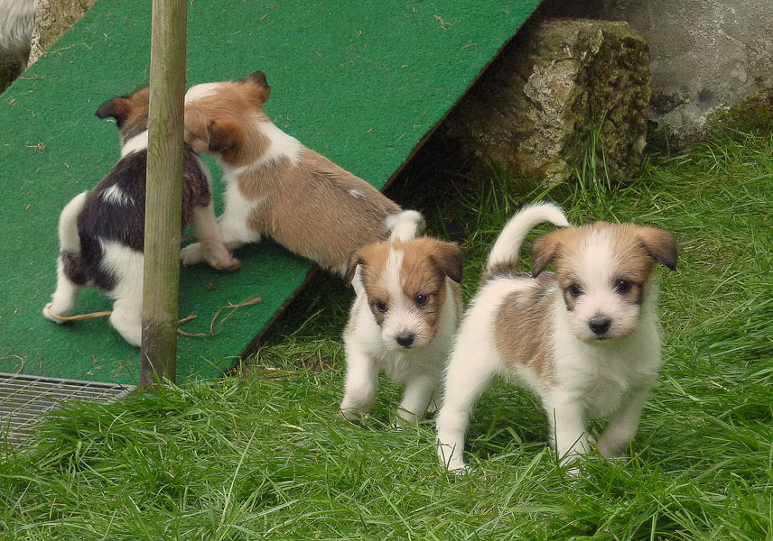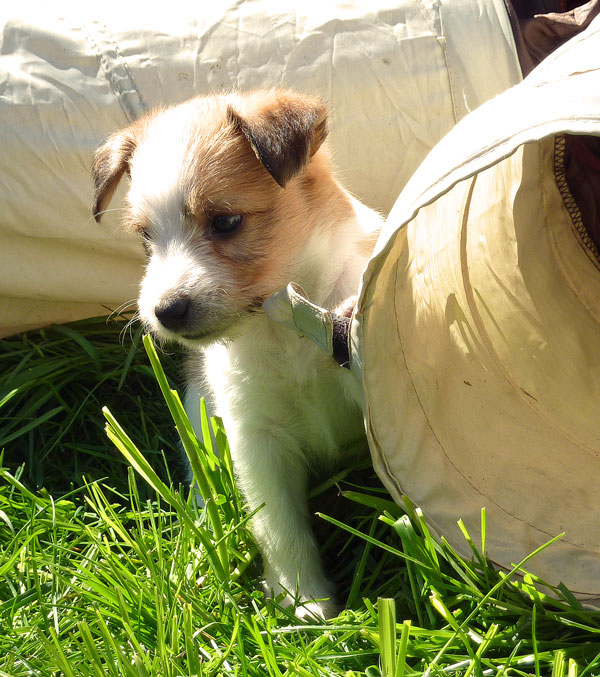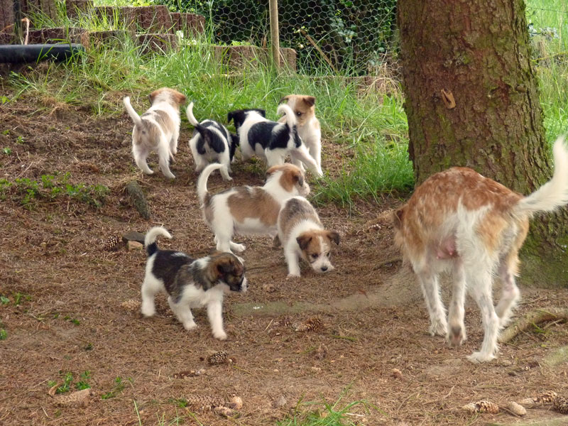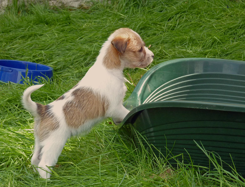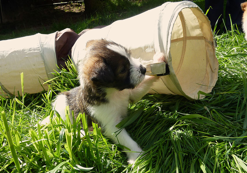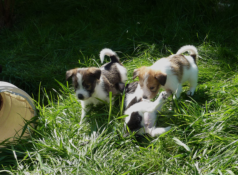 Nachdem das Wetter uns letzte Woche einen dicken Strich durch die Rechnung gemacht hatte, konnten unsere kleinen Rabauken diese Woche endlich den Garten erobern. Jetzt haben sie ausreichend Platz zum Rennen und sammeln viele neue Eindrücke (Autos, Wanderer, andere Hunde etc. ). Auch die kleinen und großen Geschäfte werden so gut wie möglich draußen erledigt.