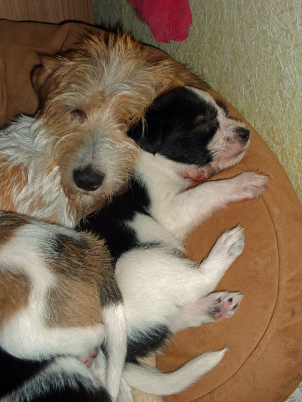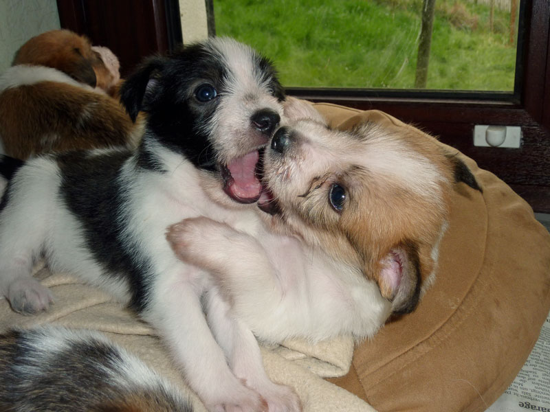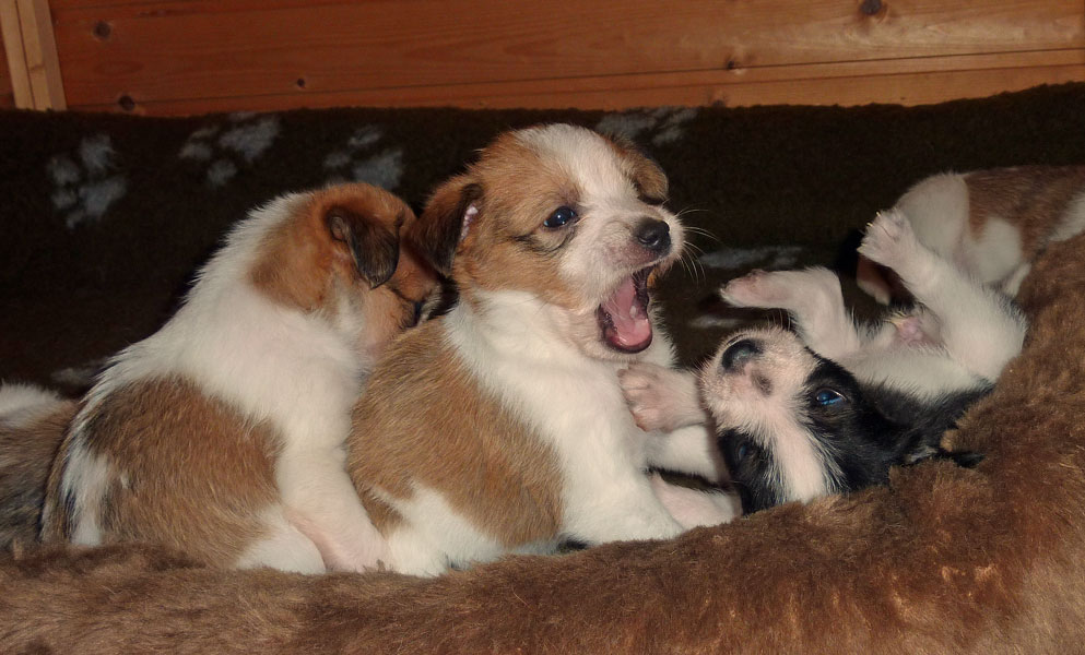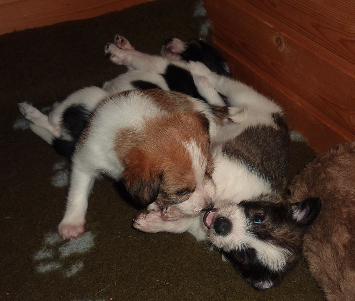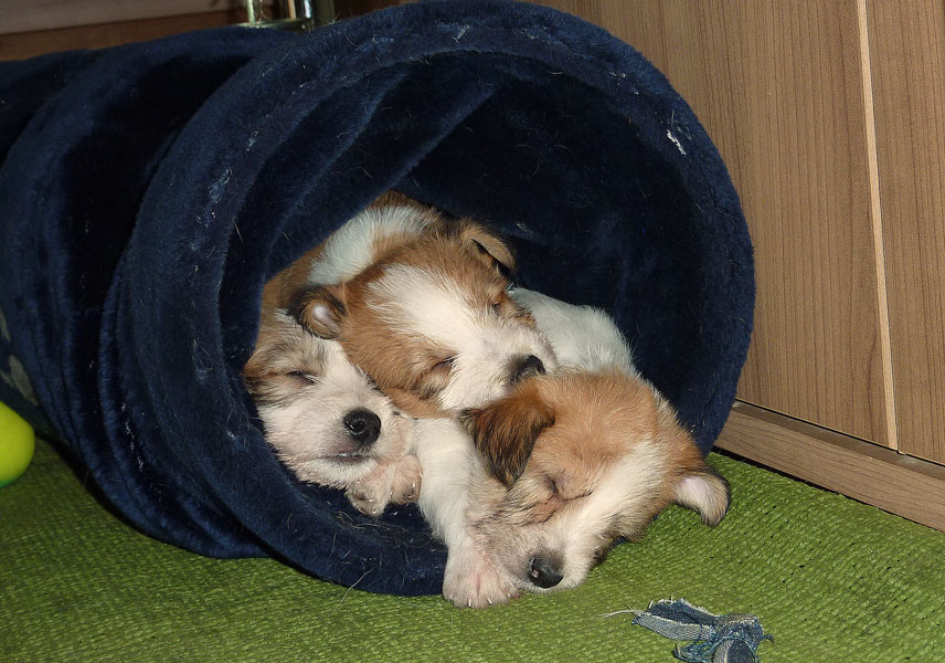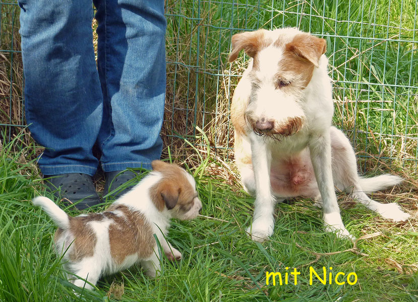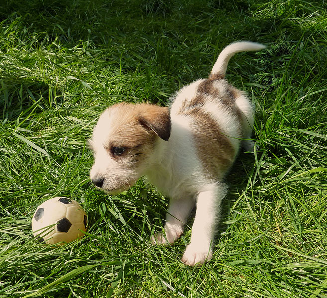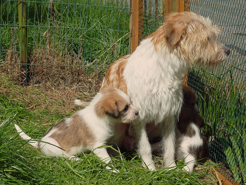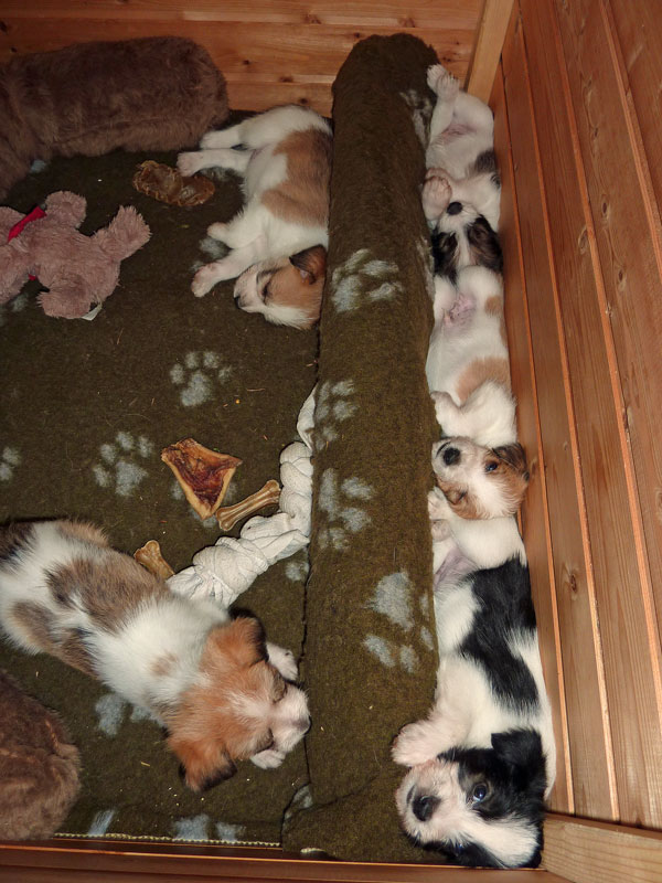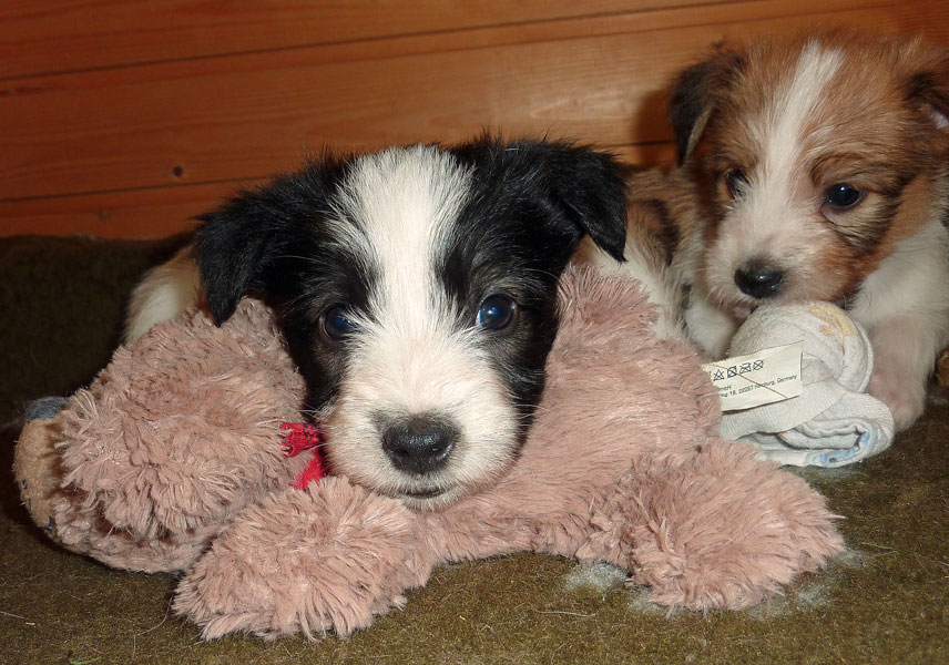 Nachdem das Wetter uns letzte Woche einen dicken Strich durch die Rechnung gemacht hatte, konnten unsere kleinen Rabauken diese Woche endlich den Garten erobern. Jetzt haben sie ausreichend Platz zum Rennen und sammeln viele neue Eindrücke (Autos, Wanderer, andere Hunde etc. ). Auch die kleinen und großen Geschäfte werden so gut wie möglich draußen erledigt.