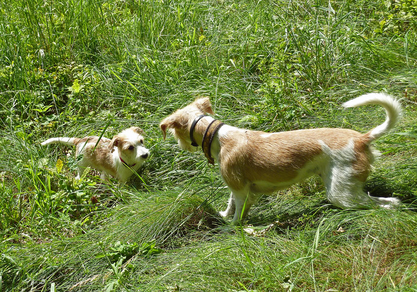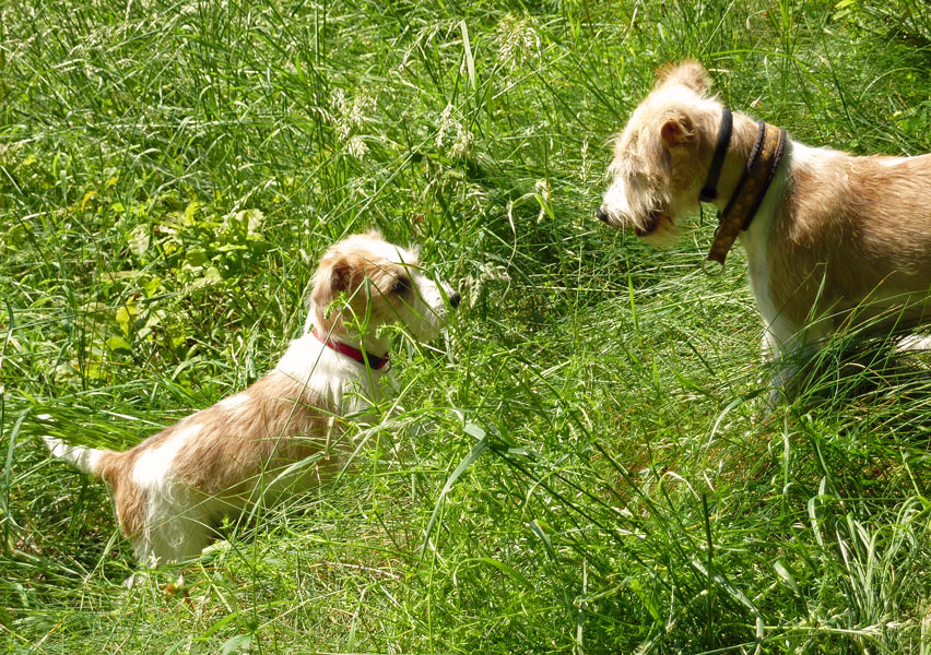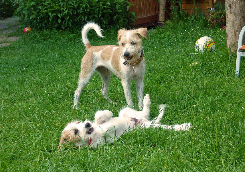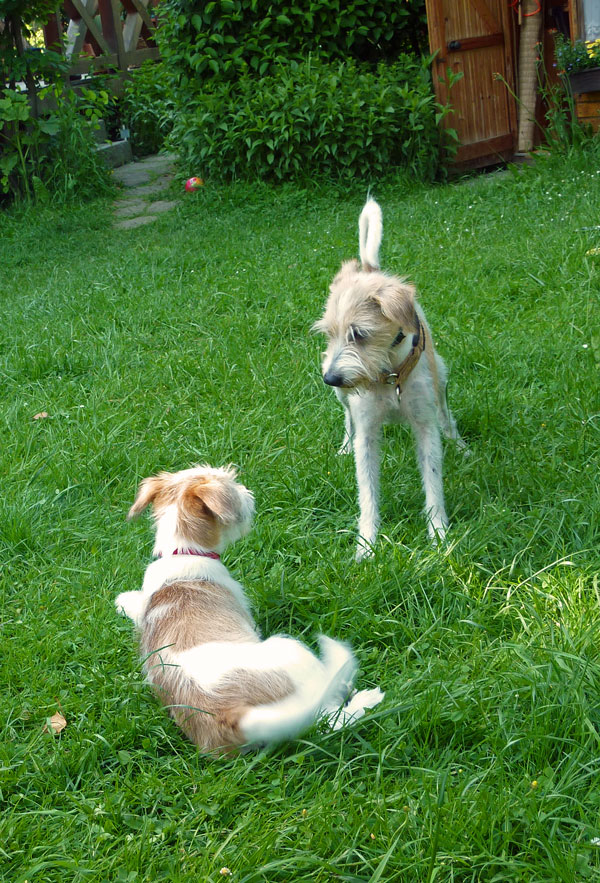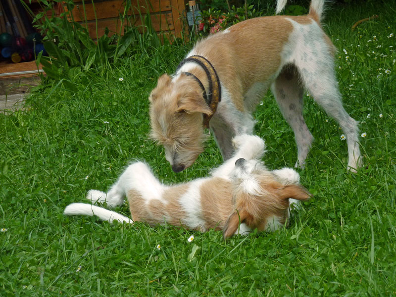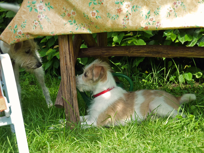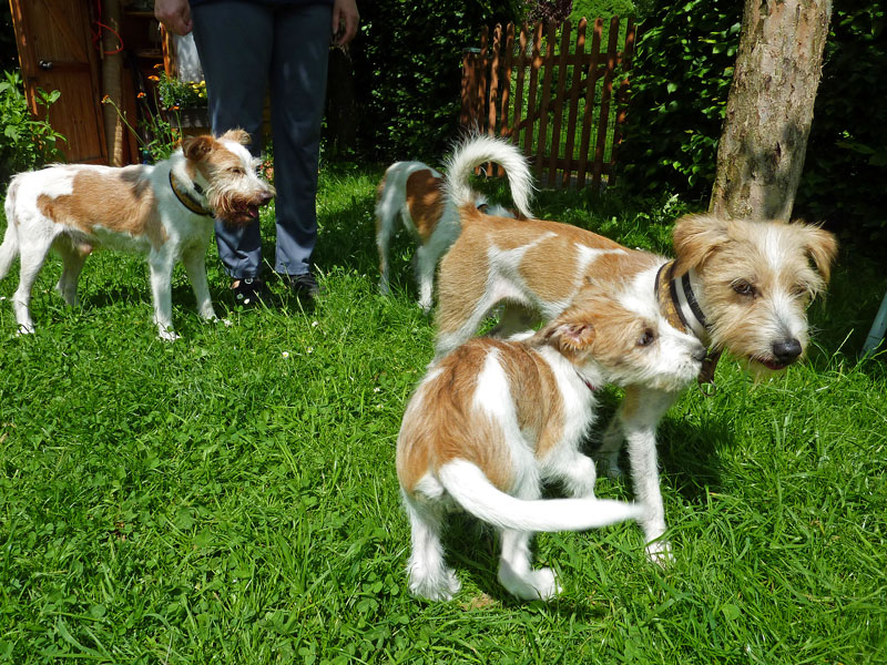 Anfangs hatten Mama Billie & Oma Düse viel Spaß dabei den kleinen Clooney zurecht zuweisen. Später wurde dann ausgiebig durch den Garten getobt.